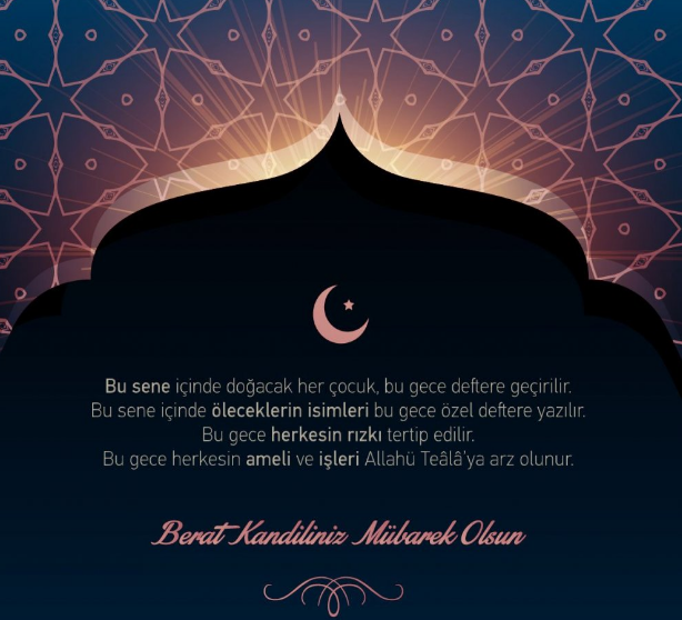 Ramazan ayının müjdecisi, rahmet ve mağfiret günü olan Berat Kandili'nizi kutlar, bu mübarek gecenin tüm İslam alemine ve insanlığa sağlık, mutluluk ve güzellikler getirmesini dileriz.